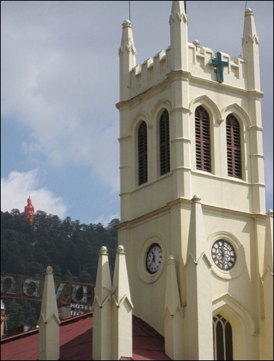 tweed merchants (where I purchased some delightful cheviot tweed from the Scottish Borders for a suit at only a fraction of the cost I would have had to pay in the mother country); numerous British style elitist schools; and an Anglican Church (now the Church of North India) dominating the main square (please note the youth in British school uniforms milling about).